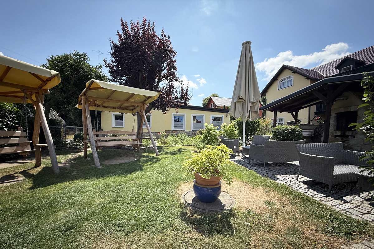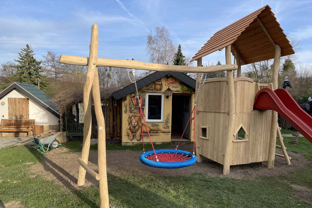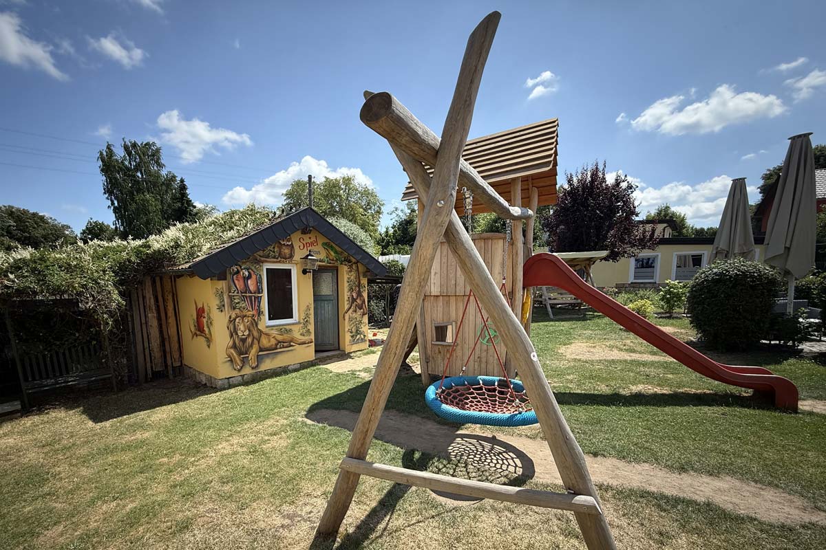 The little whirlwinds will also find their own playhouse in the garden with all kinds of toys and a drawing board for the creative artists of tomorrow. Those who prefer to aim high can climb and swing on the playground equipment.